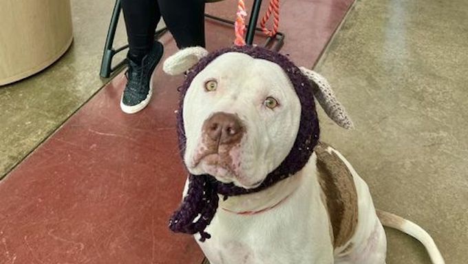 Most of us think our dogs are the most special — and in their own ways, they are. We might think they’re the cutest at the dog park, or they just wear their winter jacket better than the Pomeranian down the street. But most of our pets don’t turn heads like a 2-year-old pit bull mix. Affectionately dubbed “Willy Wonka,” this pup wears a pair of hand-knitted ears in style!